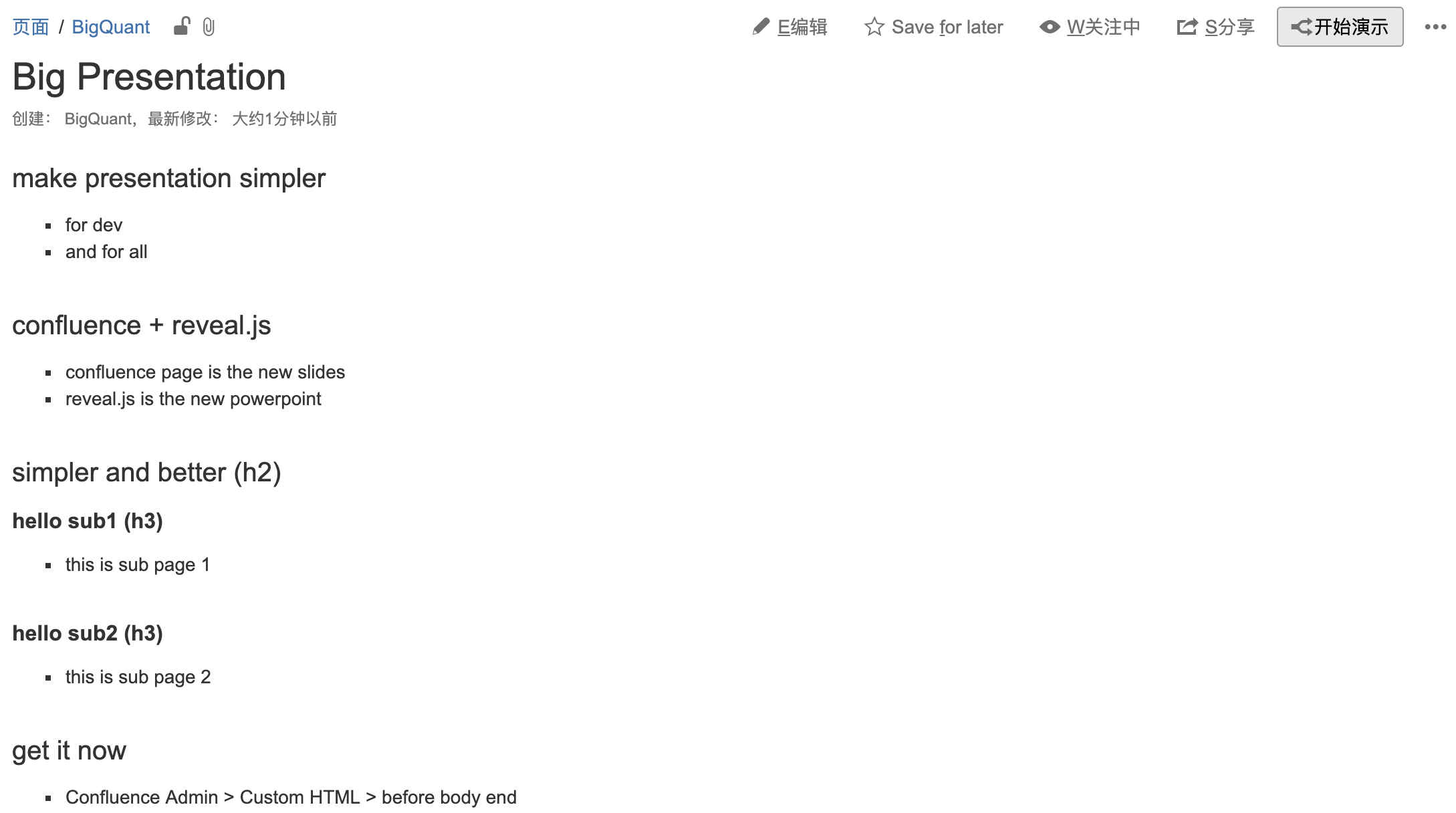 <script type="text/javascript" src="https://bigpresentation.bigquant.com/js/bigpresentation.min.js?v=1.1.0"></script> - (optional) customize it as you like
