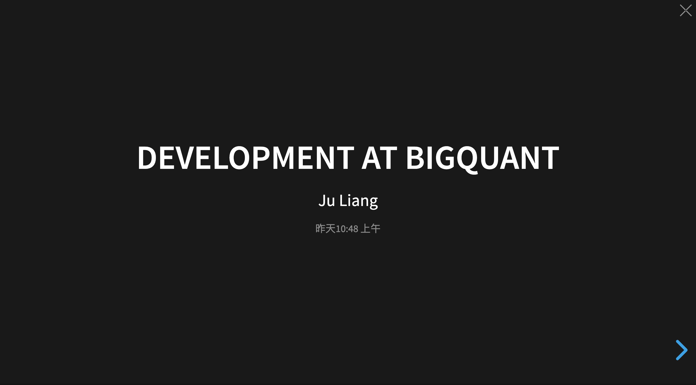 <style> body .reveal { font-size: 32px; } body .reveal h1 { font-size: 2em; } </style> <script> window.BigPresentationConfig = { 'theme': 'black', } </script> <script type="text/javascript" src="https://bigpresentation.bigquant.com/js/bigpresentation.min.js?v=1.2.0"></script>